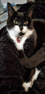 The days are getting a little cooler and daddy’s warm lap is very welcome for me in the evenings. Alfa usually relaxes behind the curtain, on the stairs, on the floor or on mummy’s lap in the evening. She gets a bit confused sometimes on where she wants to rest. No comment! 😀